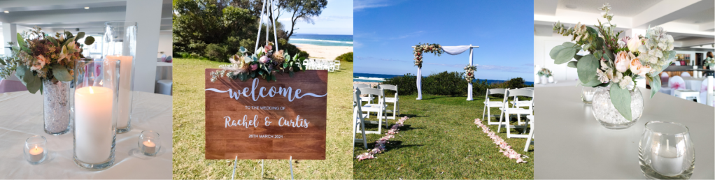Welcome sign and reception flowers by Lilies & Lace Weddings