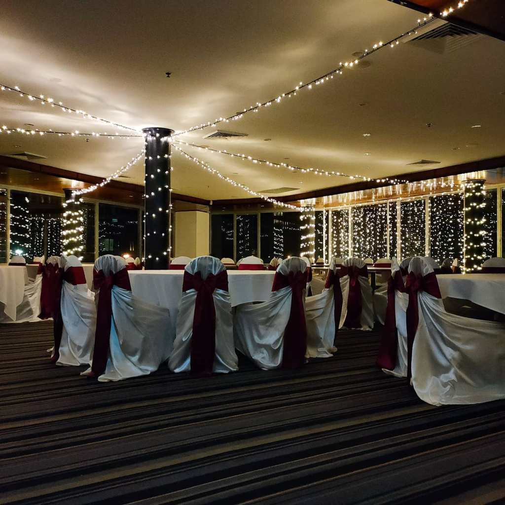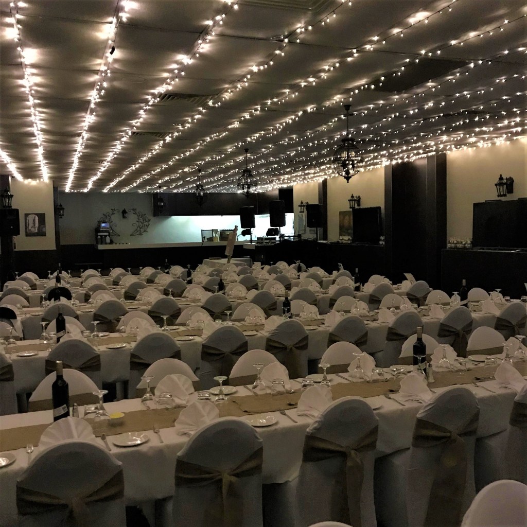 Fairy Lights Hanging in Existing Curtains Marquee Ceiling Function Room Ceiling – Octopus Function Room Ceiling – Parallel