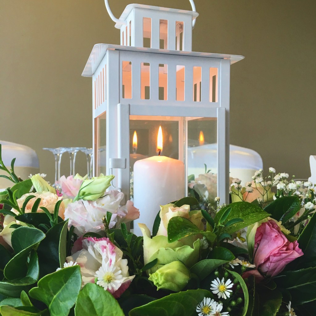 Lanterns can be used for nice simple centrepiece or an addition to a cluster of candles. They can be filled with a simple pillar candle, wire fairy lights or even flowers.
