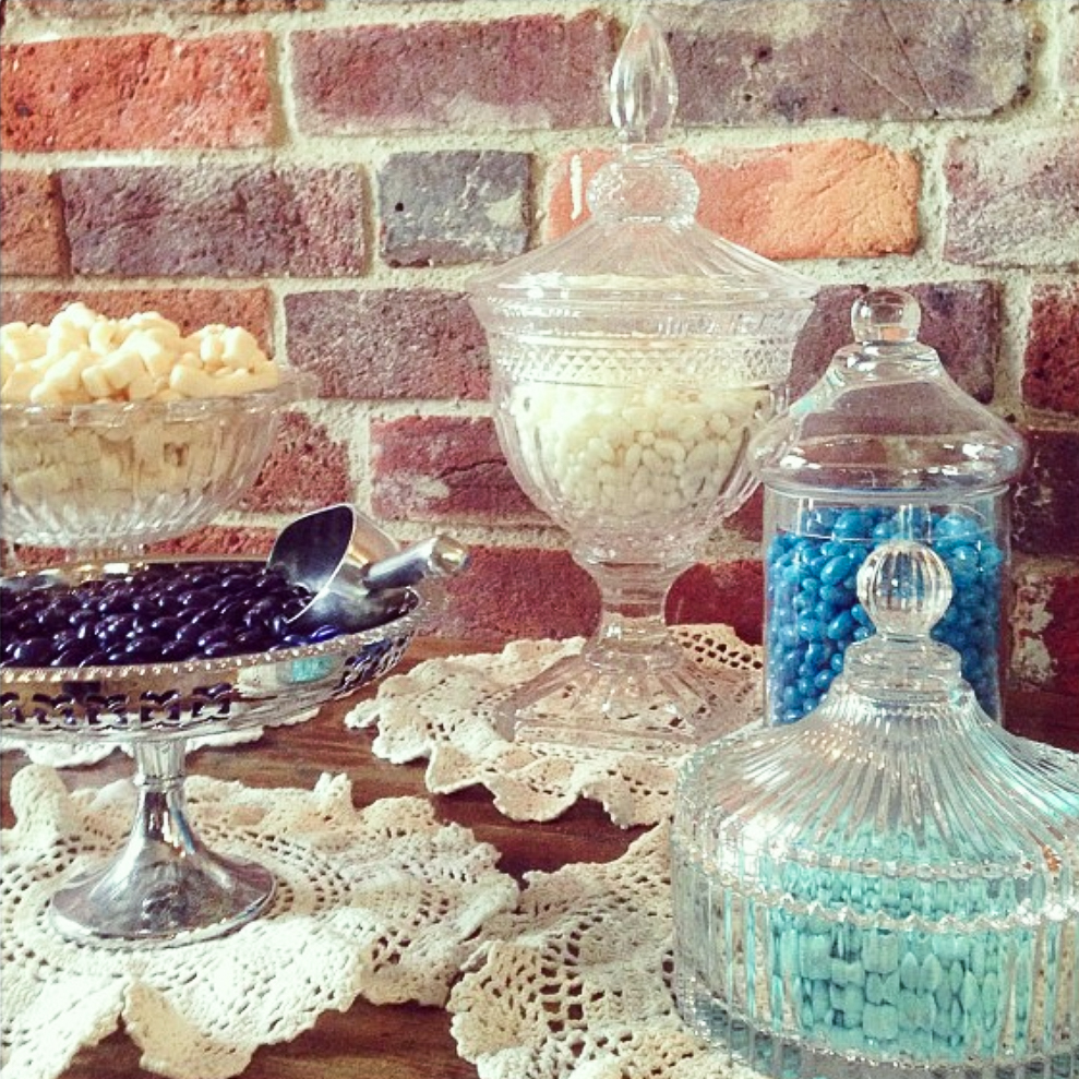 Our Lolly Buffets come with tongs, scoops as well as the option to order the lollies through us, or provide them yourself. You can also design your own lolly buffet using a mixture of any of our vases. We have a range of dedicated lolly buffet jars & vases in a variety of sizes, from vintage cut glass to jars with lids.